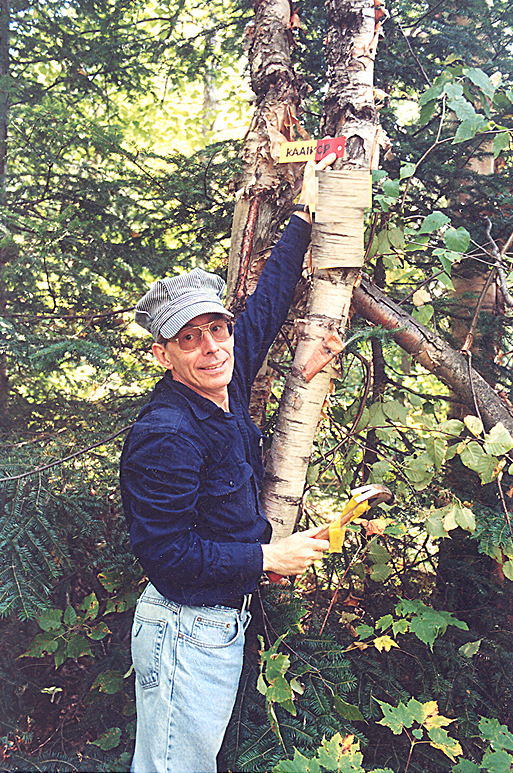« Adolescent, à la chasse, on balisait nos sentiers en en brisant l’écorce d’un arbre, en donnant des coups de hache dans le sens d’où on arrivait et dans le sens aussi vers où on se dirigeait. » – me raconte-t-il.