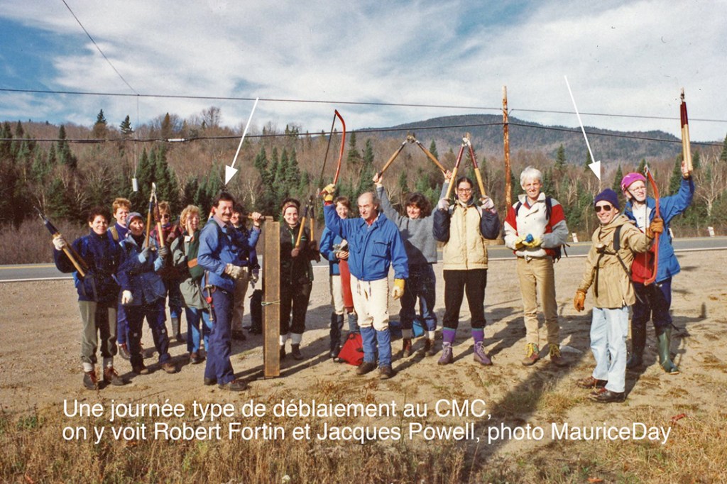 • « À chaque automne, le club programmait une vingtaine de sortie d’entretien, les weekends. Le CMC fournissait tous les outils. Nous allions dans plusieurs sentiers des Laurentides, de Lanaudière, de l’Estrie et même dans les Adirondacks. Nous entretenions les sentiers publics offerts au ski de fond. » – me raconte Claude.